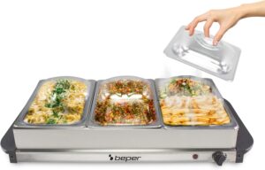 BEPER P101TEM002 è uno scaldavivande pensato per chi vuole servire pietanze calde senza complicarsi la quotidianità. È un apparecchio semplice nell’uso ma progettato per risolvere un problema comune: mantenere la temperatura dei cibi durante buffet, feste in casa o piccoli eventi senza rischio di bruciature. In un mondo in cui la praticità spesso vince sulla perfezione tecnica, questo scaldavivande si propone come una soluzione pratica, economica e versatile. Per molti sarà la risposta al fastidio di dover riscaldare all’ultimo minuto o di dover usare più pentole contemporaneamente. Chi l’ha provato almeno una volta sa quanto possa salvare la serata.